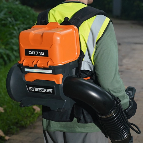 Clear large areas with the Sunseeker Elite 60V Backpack Blower DB715. Made for professionals, it provides strong power and comfort. The dual battery pack gives you longer use, making it perfect for handling leaves, debris, and small gravel.